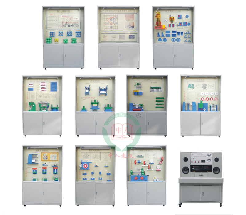 是根據(jù)金屬工藝學(xué)課程基本要求設(shè)計(jì)制造的實(shí)驗(yàn)設(shè)備。陳列柜通過零件模型或?qū)嵨铮浜舷鄳?yīng)的圖文資料,形象地展示與解說金屬工藝學(xué)的基本知識(shí),加強(qiáng)學(xué)生對(duì)金屬工藝學(xué)的類型、結(jié)構(gòu)特點(diǎn)及其設(shè)計(jì)的感性認(rèn)知,為進(jìn)一步學(xué)習(xí)奠定基礎(chǔ)。